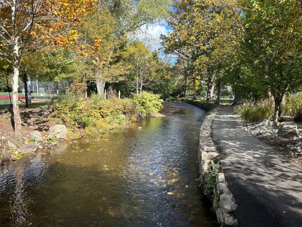 ‍The Residential Flood Advisory Committee recently went on a field trip, touring the Ho-Ho-Kus Brook (pictured), Saddle River and flood-prone areas in the Hope Street neighborhood. Committee members observed conditions, identified areas of concern, and discussed flood response as well as ways to protect homes and infrastructure from future flooding. |