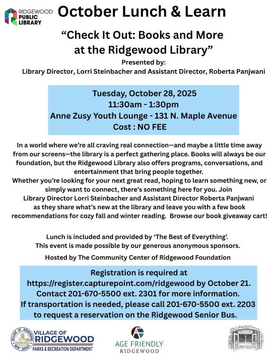 ‍The Ridgewood Village Council is seeking residents who are interested in volunteering to serve on the following Boards and Committees: Zoning Board of Adjustment; Library Board of Trustees; Citizens Safety Advisory Committee; Parks, Recreation and Conservation Board; Ridgewood Pride Committee; Kasschau Memorial Shell Committee; Ridgewood Arts Council; and Ridgewood Beautification Team. Get the details here. The deadline for submissions is November 10, 2025. |